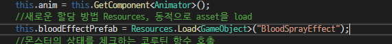 GameObject blood = Instantiate<GameObject>(bloodEffectPrefab, pos, rot, this.transform); //해당 transform의 자식 오브젝트로 복제함