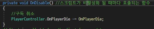private void OnDisable() //스크립트가 비활성화 될 때마다 호출되는 함수