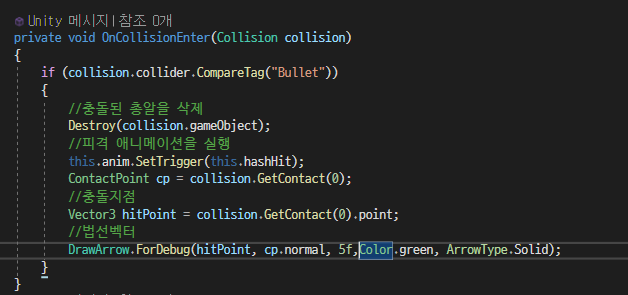normal을 기준으로 피격 이펙트(피)를 생성해야 하는데,