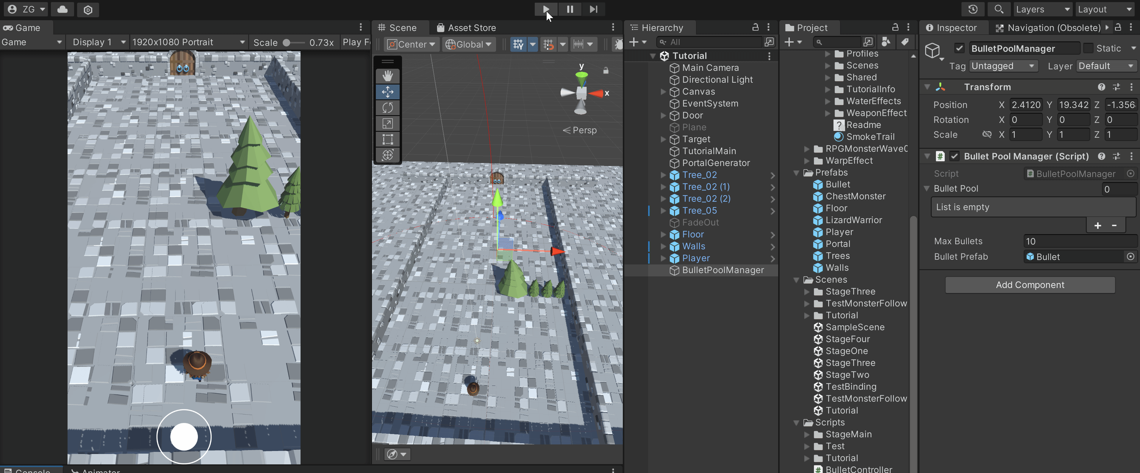 BulletPoolManager -> 총알 풀을 관리하는 스크립트, 싱글톤으로 구현하였다.