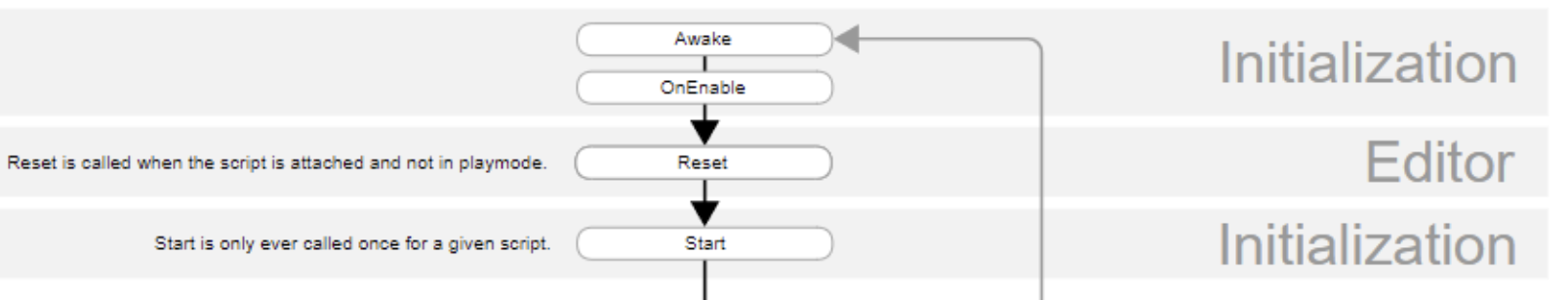 위에 사진을 보면, 호출되는 순서는 Awake -> OnEnable -> Start 순이다.