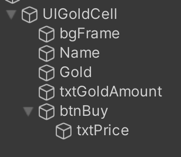 이제 content의 자식으로 들어갈 UIGoldCell을 만들어 보겠다.