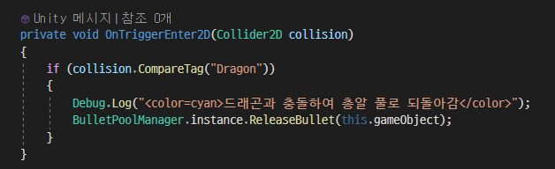 EasyCastleT 2023. 9. 13. 18:04총알과 드래곤 충돌처리