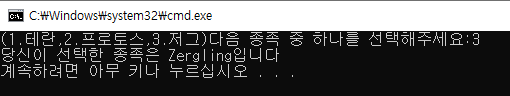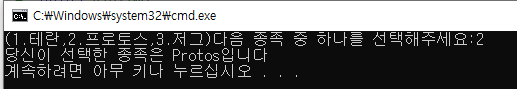 열거형 이용 스타크래프트 종족 선택 본문