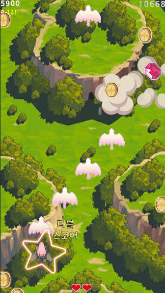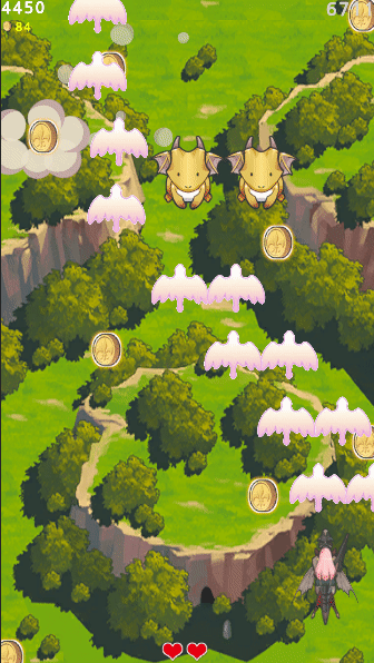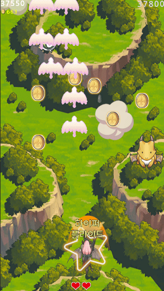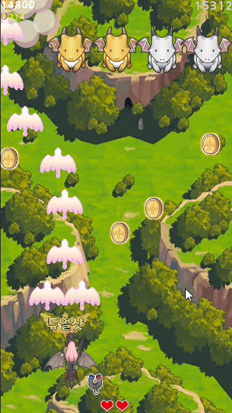 -> 보이는 것은 플레이어가 가속하는 것처럼 보이지만, 실제로는 날아오는 드래곤과, 배경의 스크롤 속도가 가속되는 것입니다.