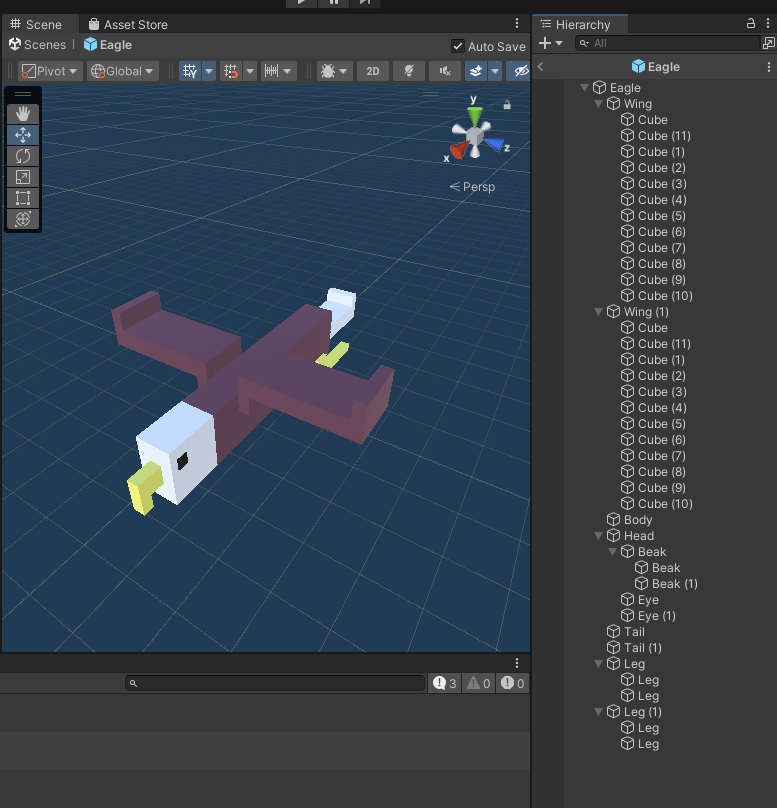 그래서, 독수리를 만들어 보았습니다. 이 독수리도 유니티내에서, 큐브로 만들었습니다.