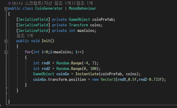 그리고 이 코인을 랜덤한 위치에 여러 개 미리 만들도록 해보겠습니다.