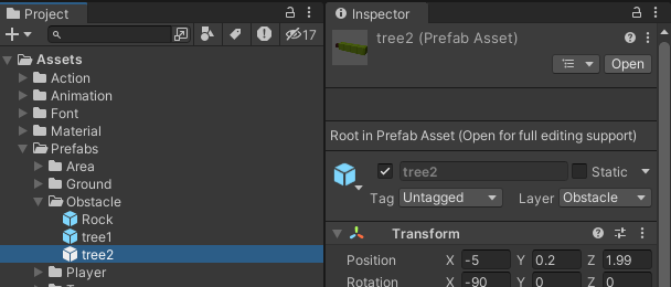그리고 이 위치에서 레이를 발사하고, Obstacle이라는 Layer를 가지고 있는 오브젝트만을 검출하도록 만들어주었습니다.