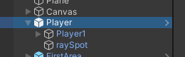 먼저 플레이어의 앞으로 레이를 발사할 위치를 빈 오브젝트로 만들고, 플레이어의 자식으로 만들어 주었습니다.