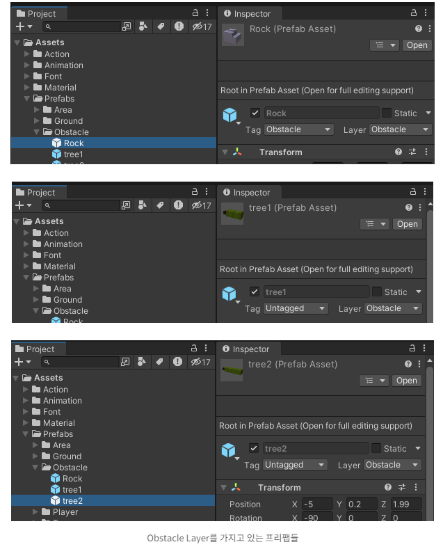 위와 같은 스크립트를 통해 Default 위치에 장애물이 생성되게 하였습니다.