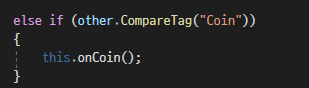 코인도 점수증가와 비슷하게 코인과 충돌하면 플레이어가 대리자를 호출합니다.