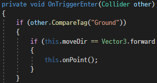 플레이어의 이동방향을 저장하고 있는 moveDir이 forward 즉, 앞으로 이동하는 것이 아니라면, 포인트 처리를 하지 않게 하였습니다.