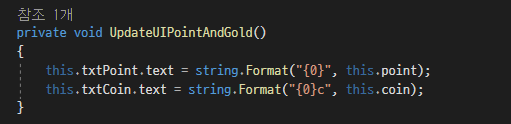 그리고 GameMain에서 위에서 증가한 변수의 값을 각각의 text에서 보여주도록 했습니다.