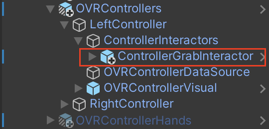 2. 프로젝트에서 HandGrabInteractor를 찾아 ControllerHands > LeftControllerHand > ControllerHandInteractors