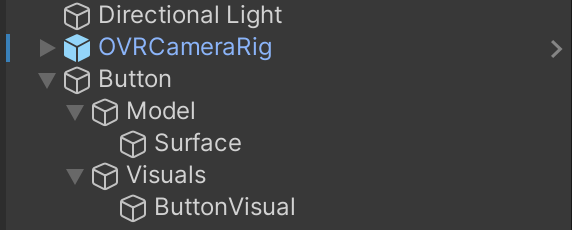 3. Button 아래의 Model 과 Visuals 라는 이름의 빈 오브젝트들을 자식으로 붙입니다.