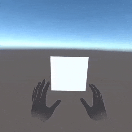 현재 씬이 로드되면, 너의 손들이나 컨트롤러들을 이용하여 버튼을 누릅니다. 여러분이 버튼을 눌렀을때, 버튼은 여러분으로 부터 멀어지고, 버튼을 놓으면 원래 위치로 돌아갑니다.