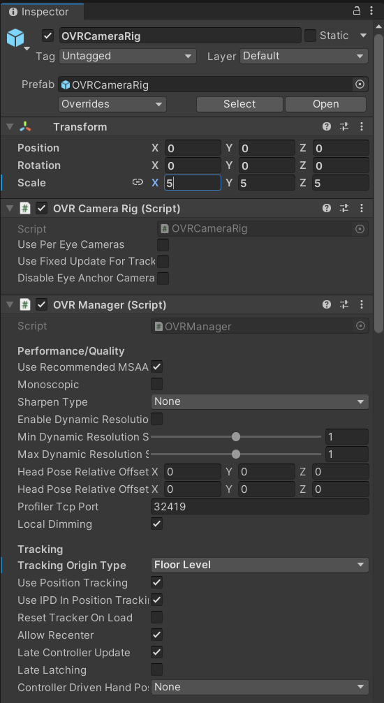 그래서 오히려 반대로 생각해보기로 하였습니다. OVRCameraRig의 크기를 키워서 문제가 발생하는 것이라면,