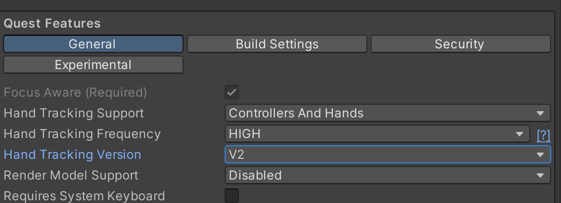 5. OVRCameraRig의 OVRManager의 Quest Features를 아래 사진과 같이 변경