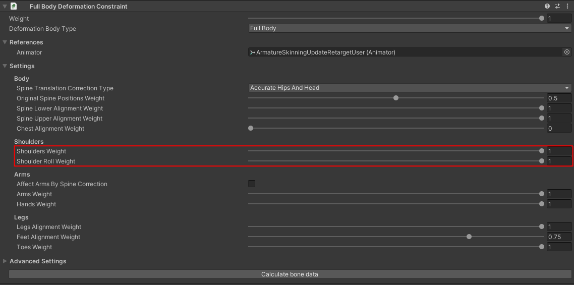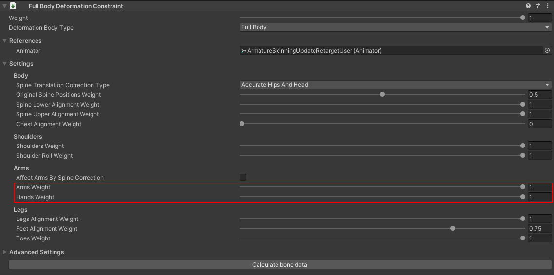 - Rig 아래에 있는 FullBodyDeformationConstraint (Animation Rigging)을 사용하여 캐릭터 비율을 유지한다.
