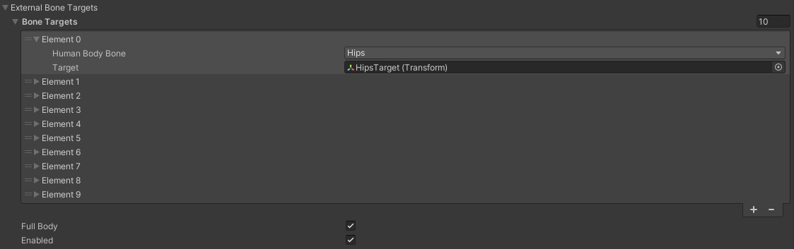 커스텀 타겟 캐릭터는 Humanoid로 가져왔고, 각각의 Bone은 HumanBodyBone 스크립트의 enum 값과 연결되어 있다.