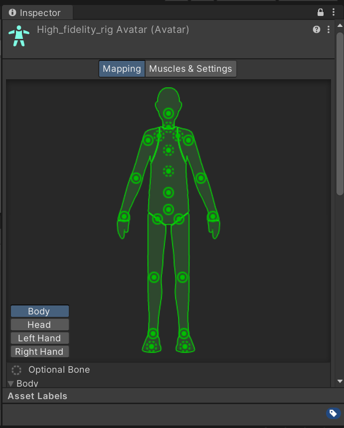자세한 내용은 Unity 설명서를 참조. 아래의 사진은 일반적인 Humanoid이다.