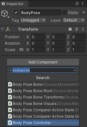 다음 단계는 Service에서 Body Tracking Pose를 읽고 캐릭터에 적용하는 스크립트인 컴포넌트를 캐릭터에 추가하는 것이다.