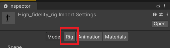 3. Unity Inspector 탭에서 Rig 탭으로 이동한다.
