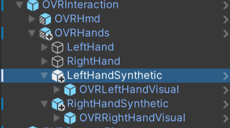 - OVRHands > LeftHand 아래에서 HandVisualsLeft를 비활성화합니다.