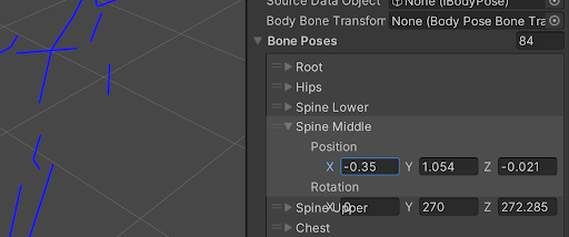 Meta는 84개의 Bone으로 구성된 독자적인 Body Tracking Skeleton을 사용한다. (부록 A 참조) 이 Skeleton은 캐릭터 리그가 아닌 human skeleton에 해당된다. Unity 내에서 Body Tracking API는 Unity GameObject에 연결된 Component들로 실행되는 일련의 스크립트를 통해 액세스한다.