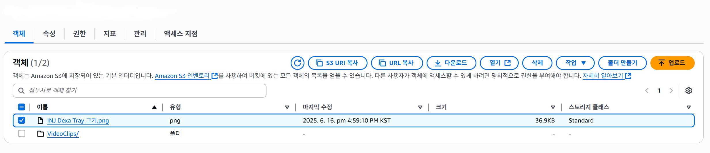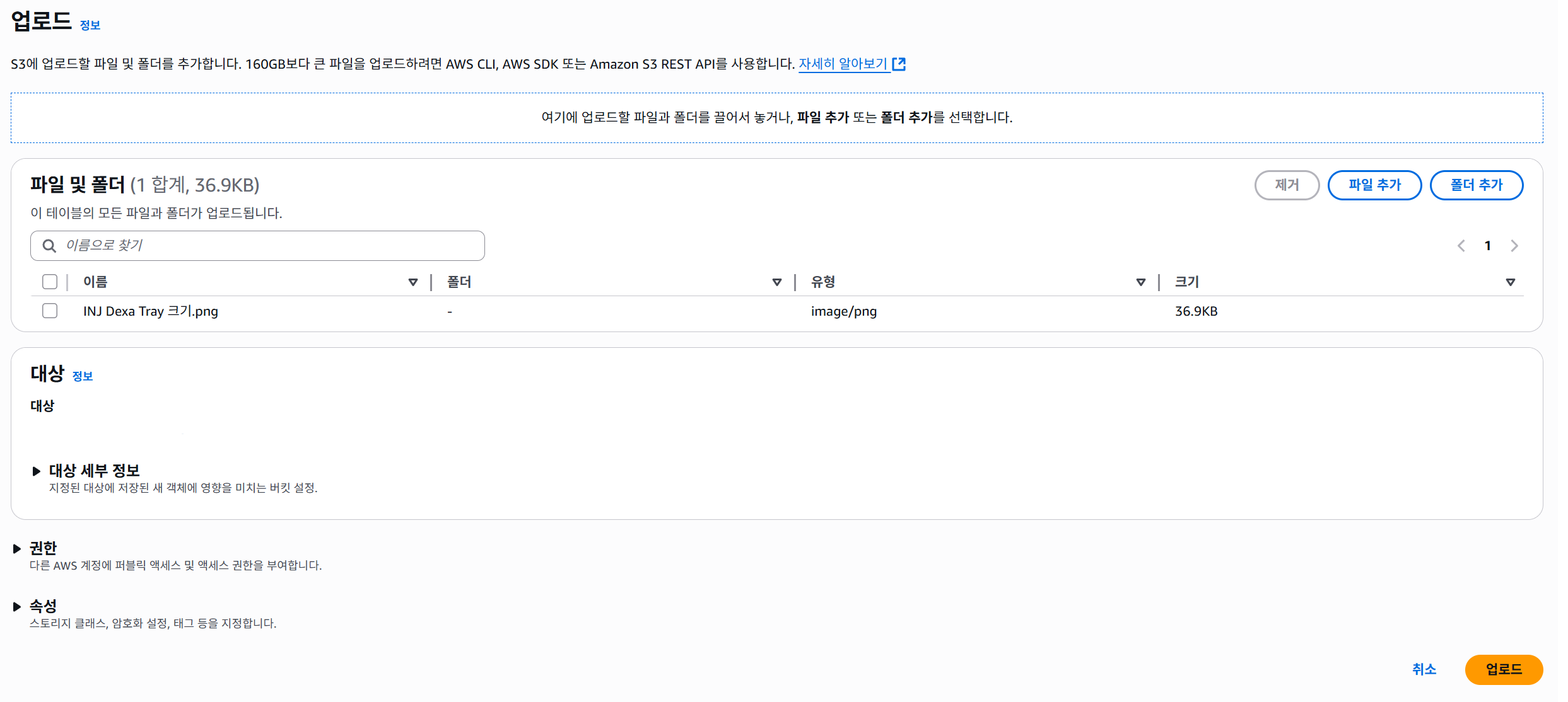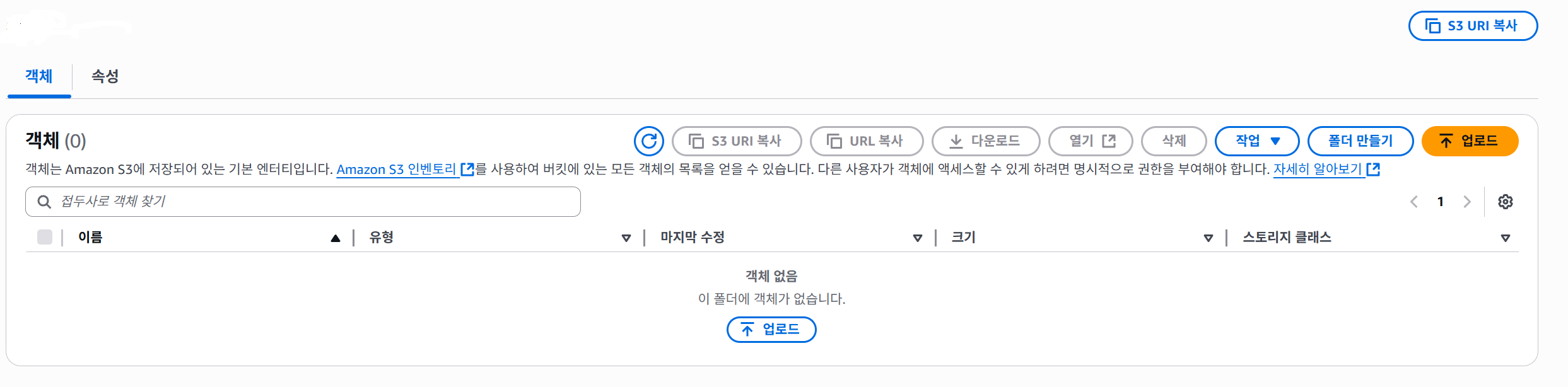 파란색으로 쓰여 있는 버킷 이름을 눌러 버킷 안 쪽으로 들어가 보자