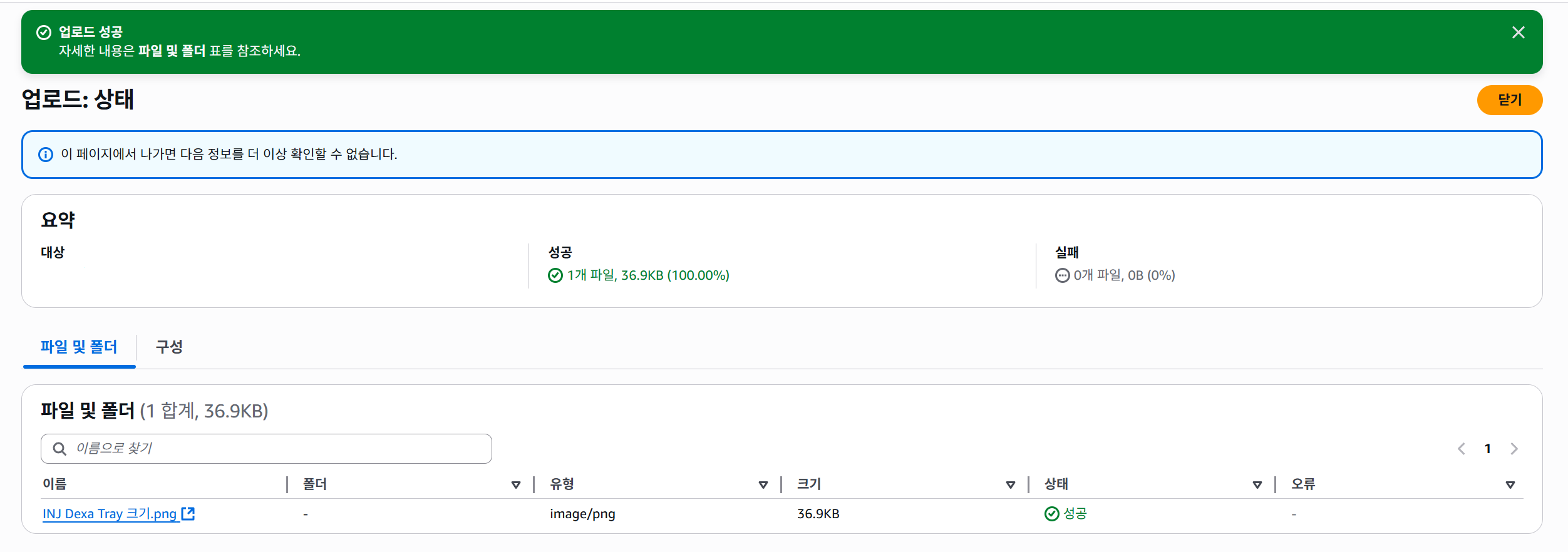 이 창이 나오면 정상적으로 업로드 된 것이고, 닫기 버튼을 눌러 나가면 된다.