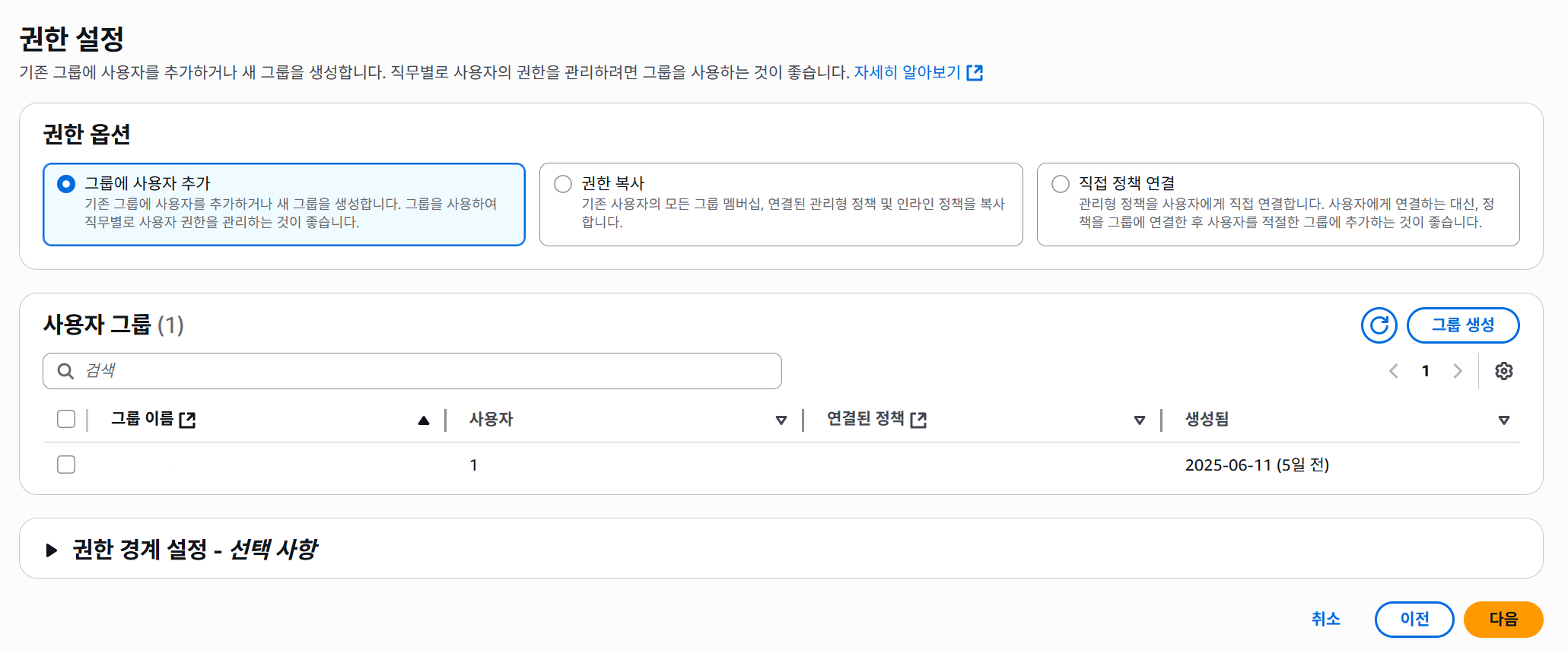 여기서는 사용자 그룹도 없고, 아예 처음 만드는 경우라고 가정하고 만들어 보겠다.