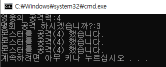 Console.WriteLine("몬스터를 공격({0}) 했습니다.", attack);