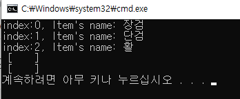 //아이템 배열의 각 요소의 이름과 출력 index를 출력