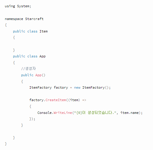 Console.WriteLine("{0}이 생성되었습니다.", item.name);