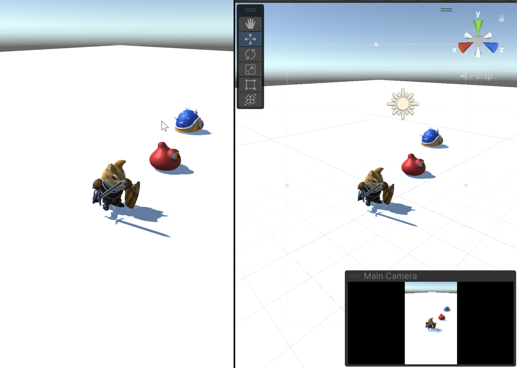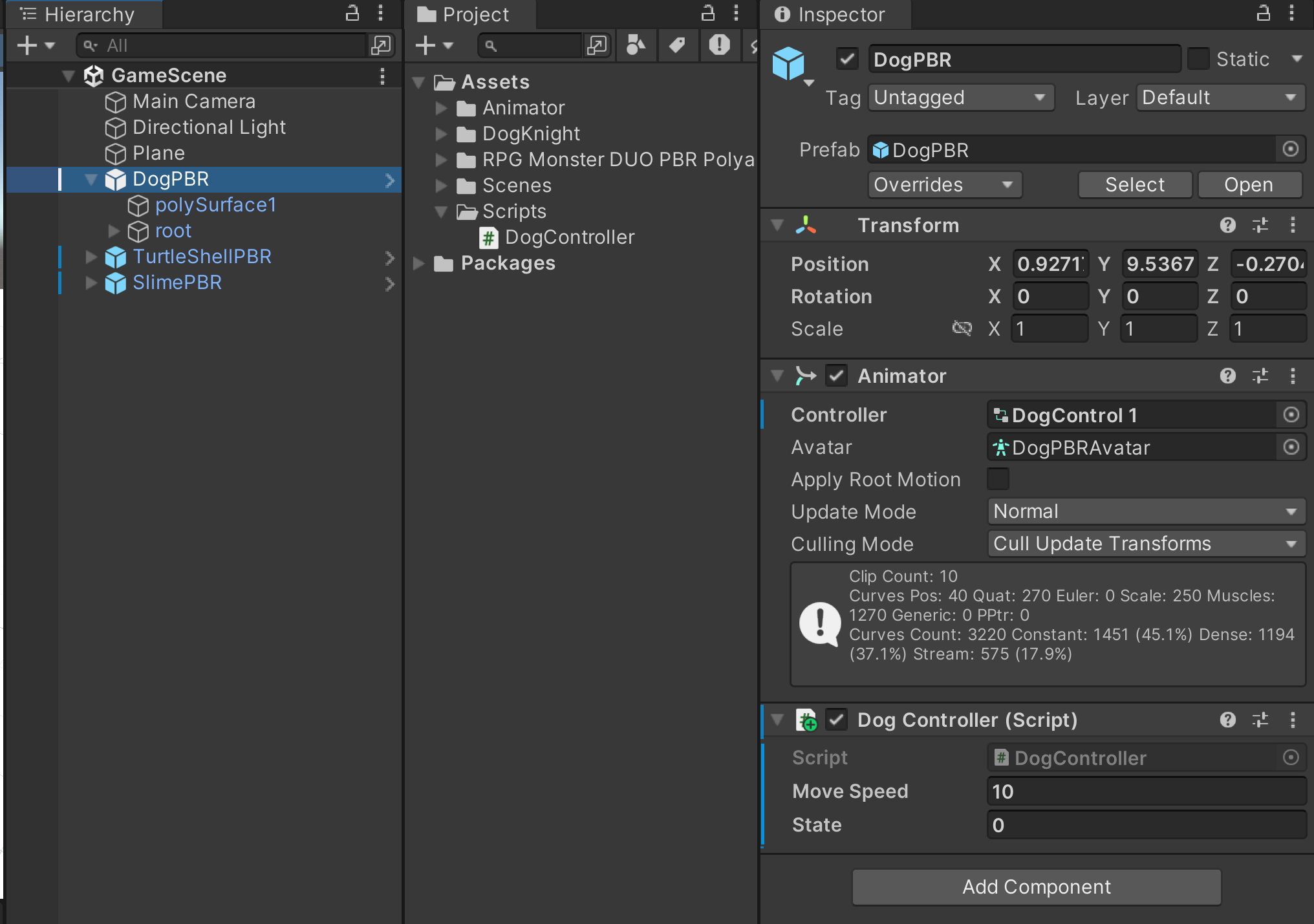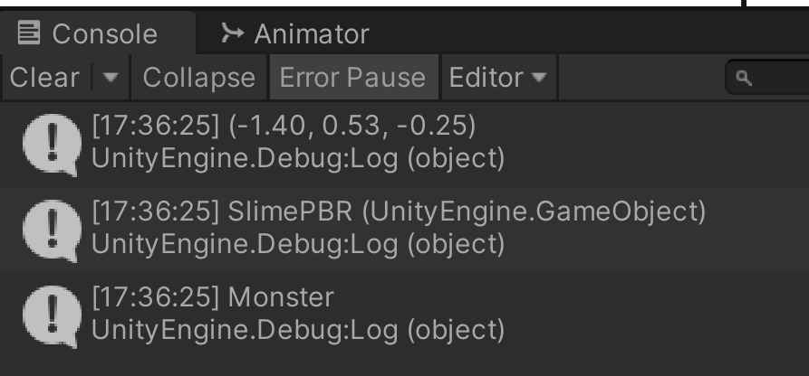 현재의 문제점: 몬스터의 Collider 크기로 인해 Dog가 Monster에 도착하면, 공중에 뜨게 된다.