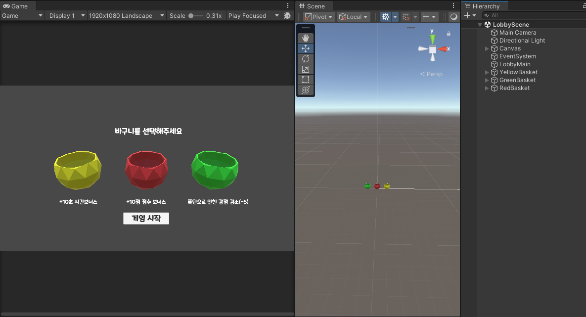 1.Lobby에서 각각 효과가 다른 바구니를 선택하고 그 바구니를 통해 게임이 실행