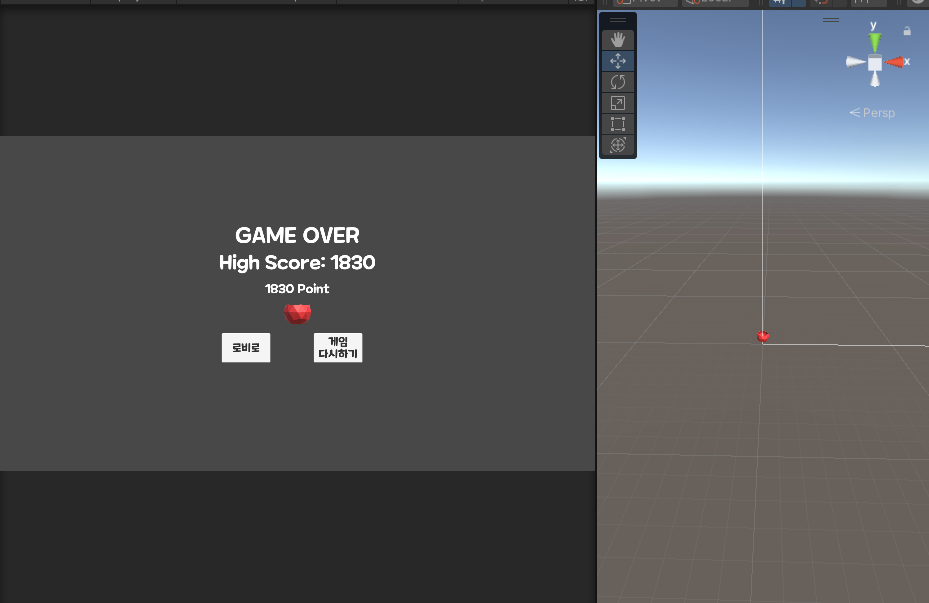 4. 시간이 다되면 게임이 종료되며, 게임오버 창(GameOverScene)으로 넘어간다.